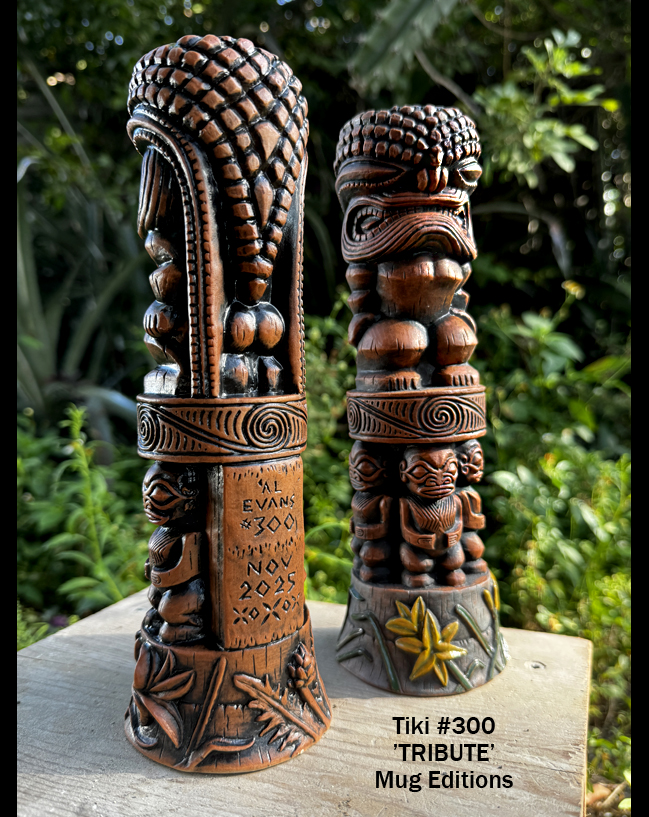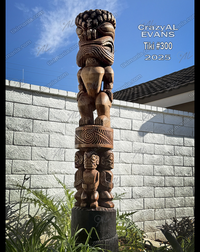 Nov. & Dec. of 2025. Celebrating the latest 100 Tiki Sculptures of CrazyAL, Tiki #300 pays 'Tribute' to the classic Polynesian Artists.